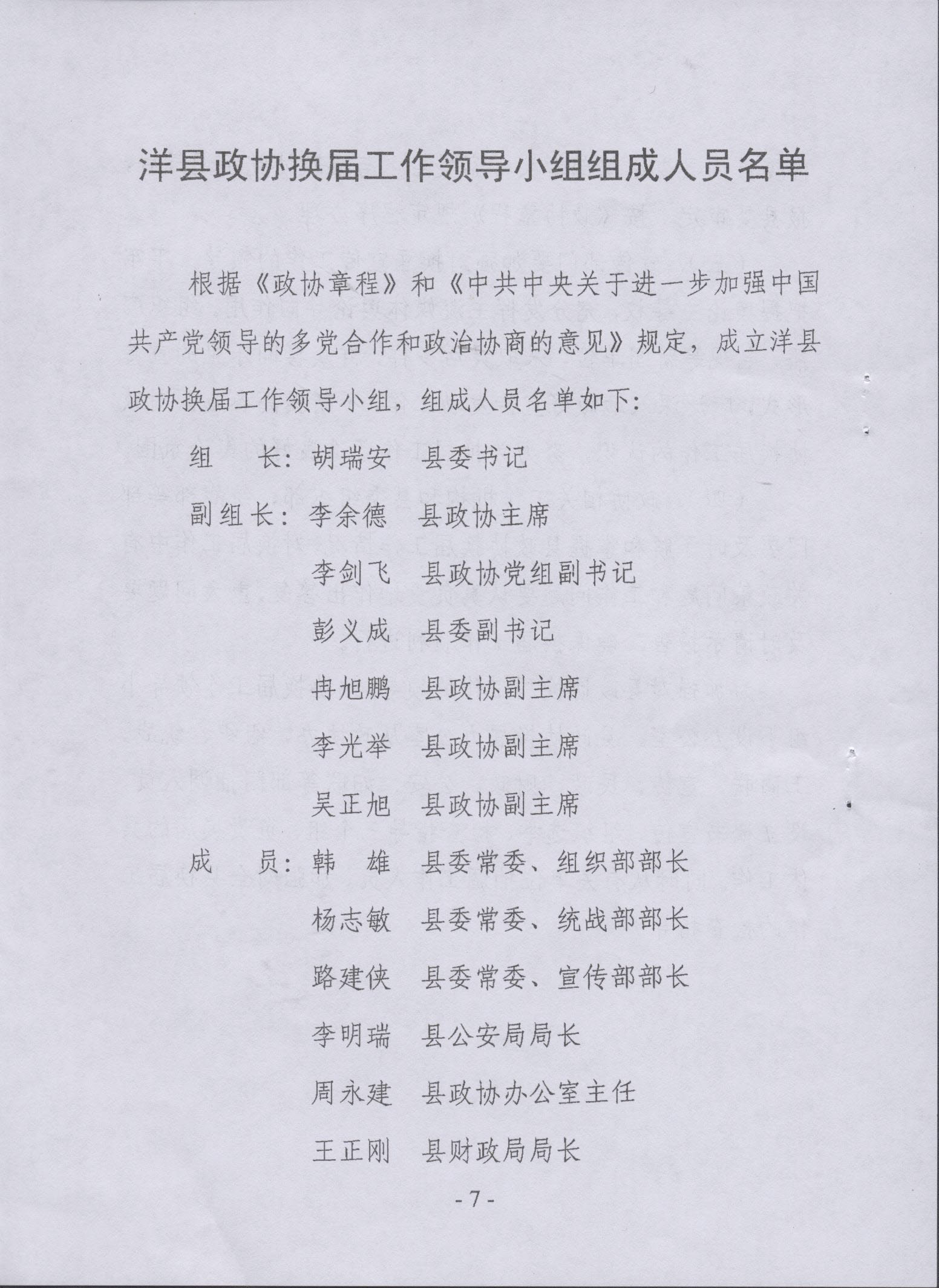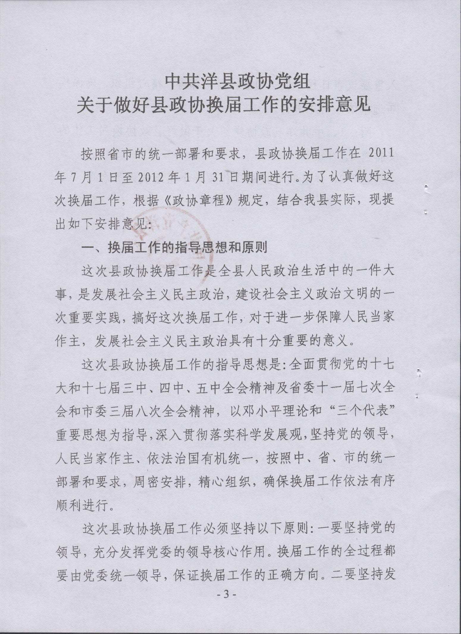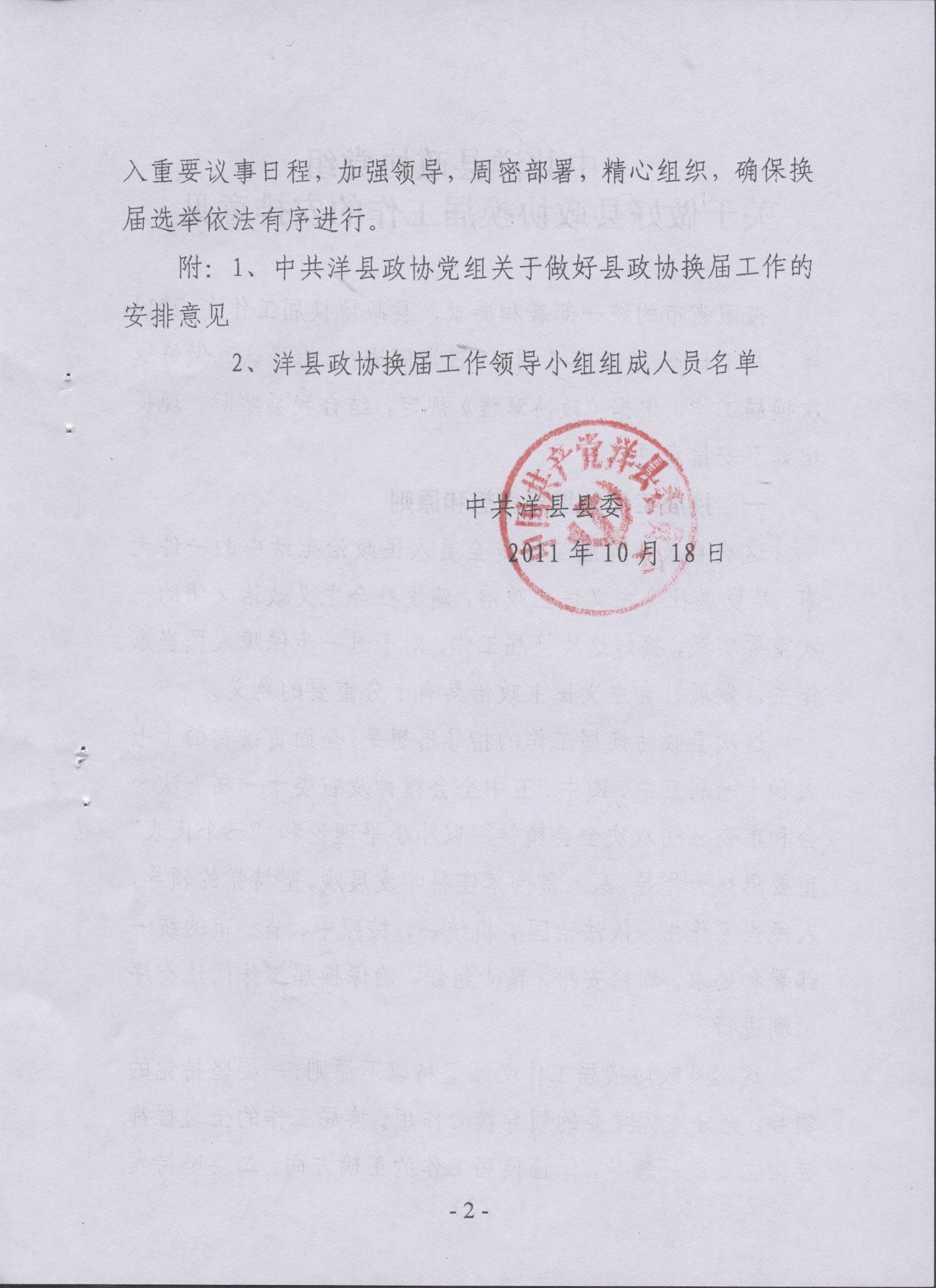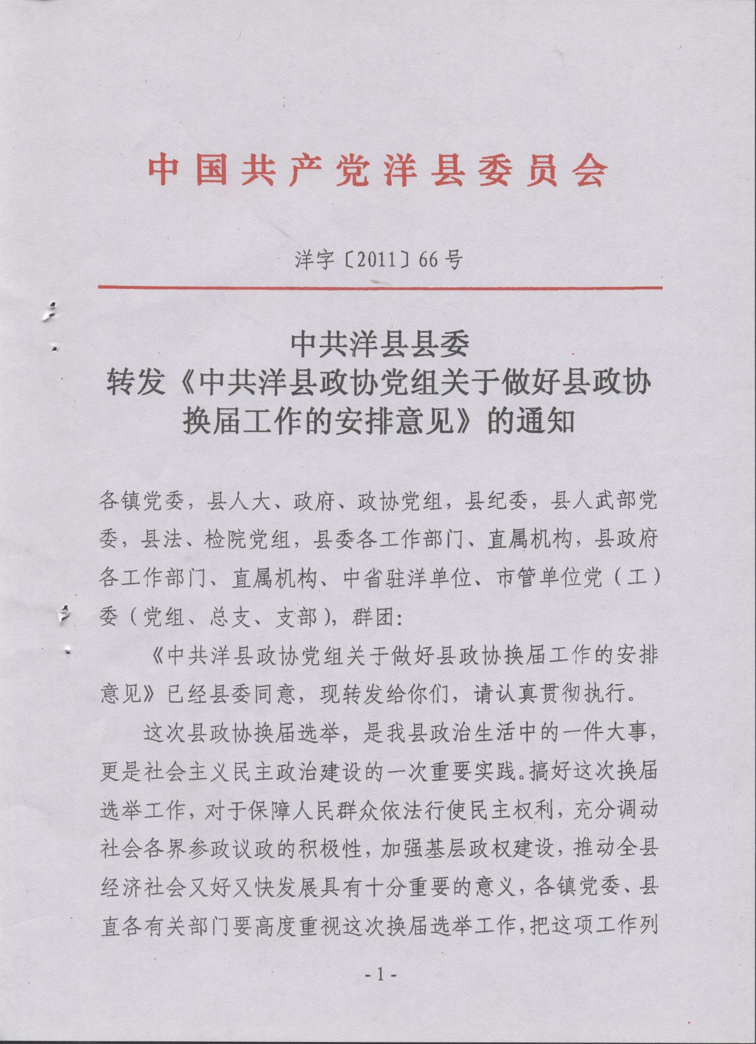 中共洋县县委转发《中共洋县政协党组关于做好县政协换届工作的安排意见》的通知
